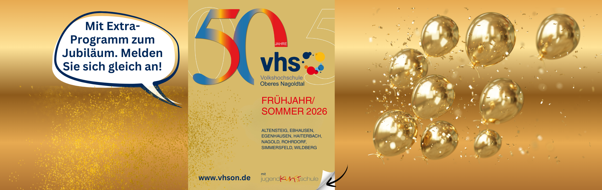 Wir feiern dieses Jahr 50 Jahre Volkshochschule Oberes Nagoldtal - mit einem ganz besonderen Angebot für Sie: Jubiläumskursen, die besondere Kurse aus…